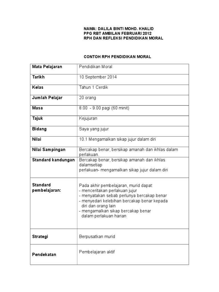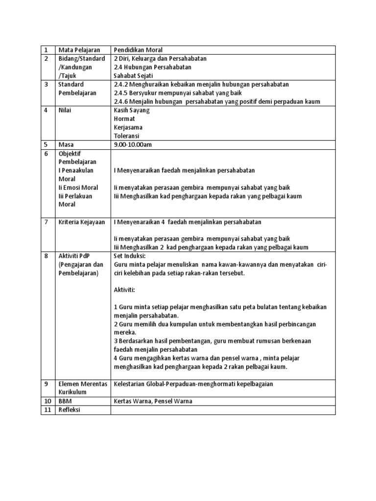 Doc Rancangan Pengajaran Harian Pendidikan Moral Tahun 4 Cikgu Mor Academia Edu